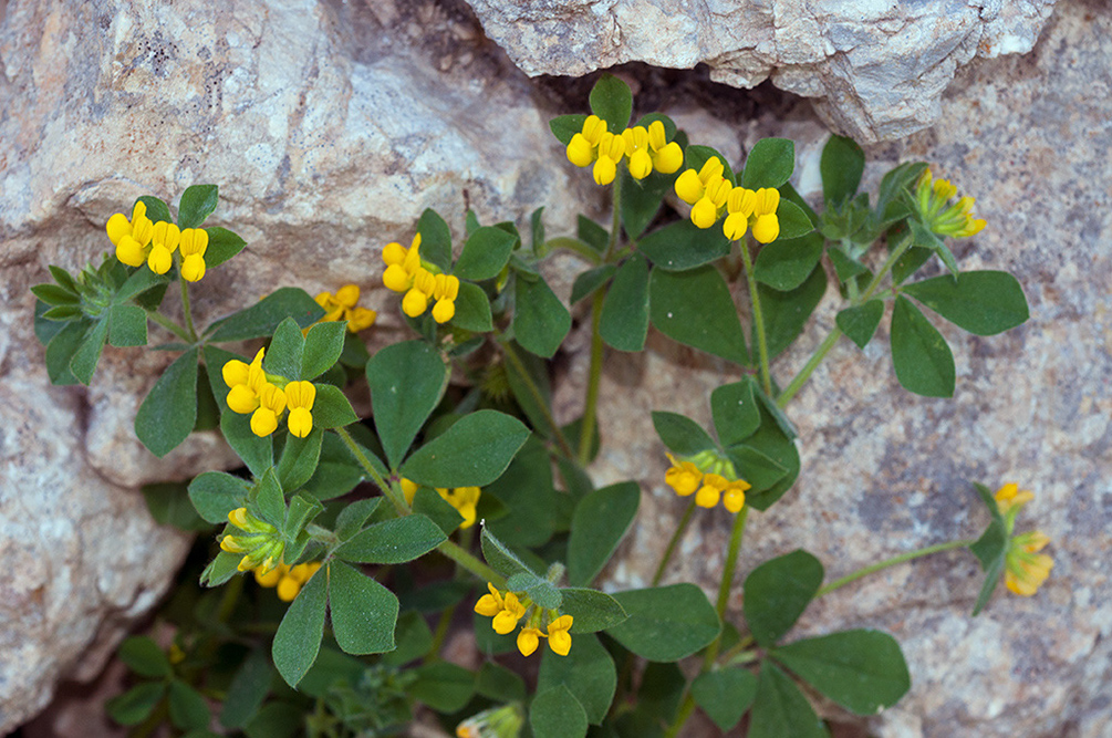 Southern Bird's-foot-trefoil (Lotus ornithopodioides), wayside, country lane, Capdepera, Mallorca, April.